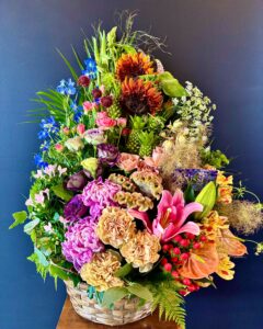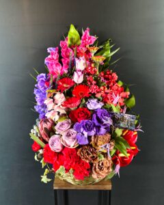 おまかせフラワーアレンジメントになります。 高さのあるスタンダートフラワーアレンジメント。
